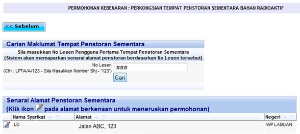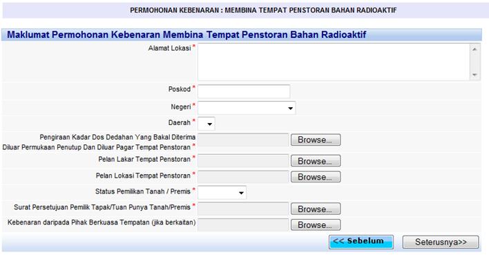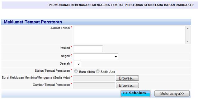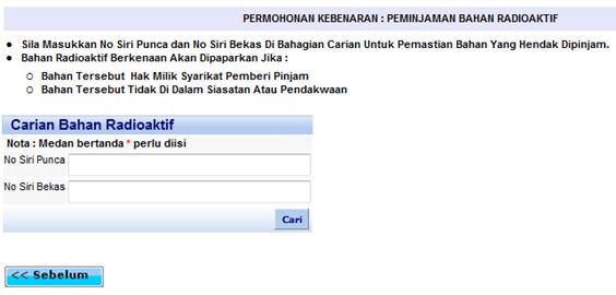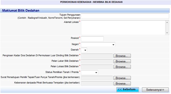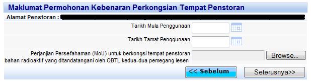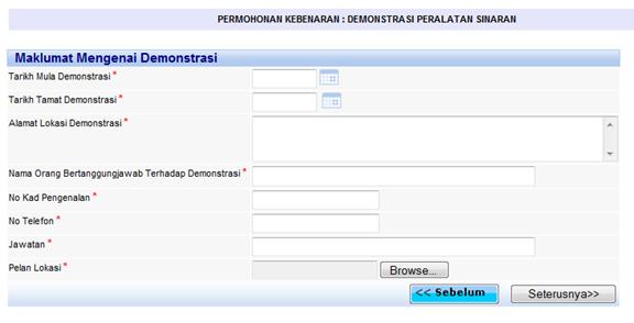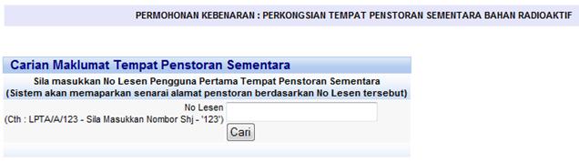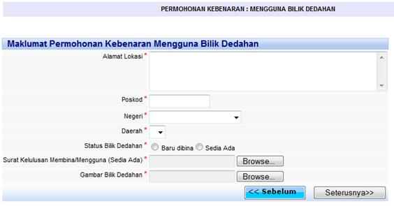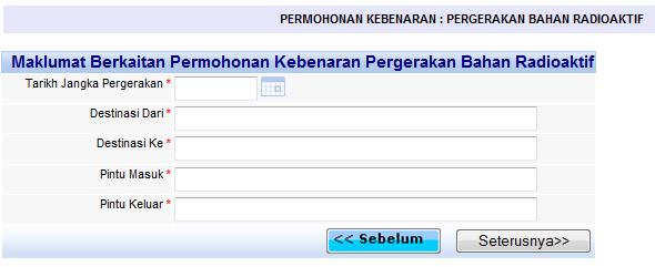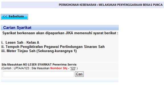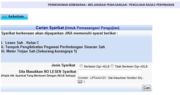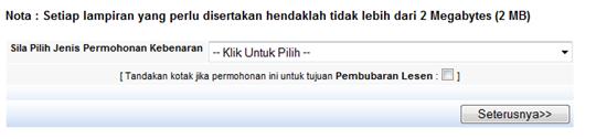 Menu Permohonan Kebenaran