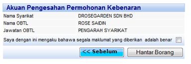 5. Berikut pula adalah skrin Akuan Pengesahan penghantaran yang merupakan