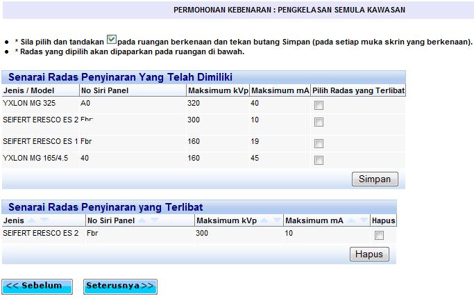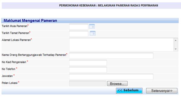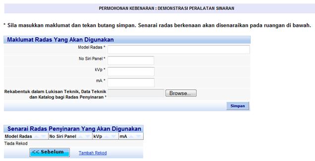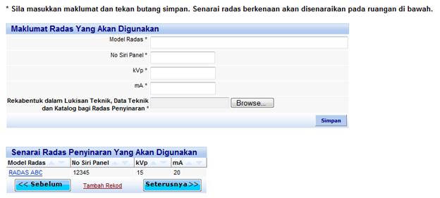 6. Di antara skrin pertama dan skrin terakhir, sistem akan memaparkan borang
