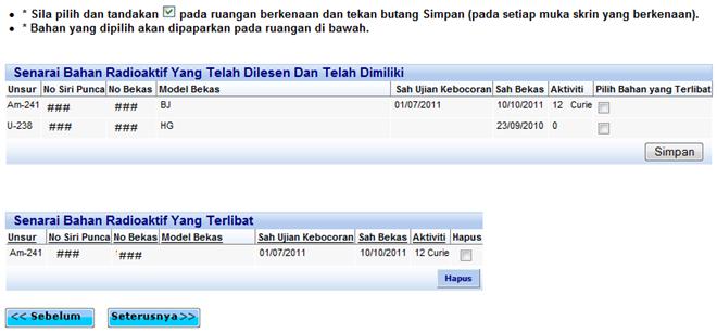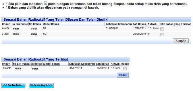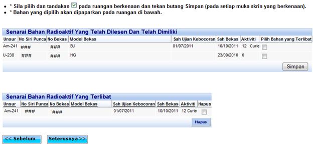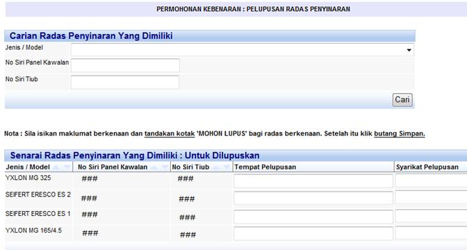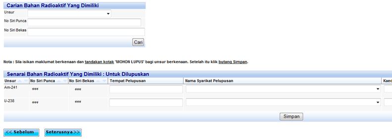 radas yang hendak dilupuskan dan tekan butang ‘Simpan’. ![]()