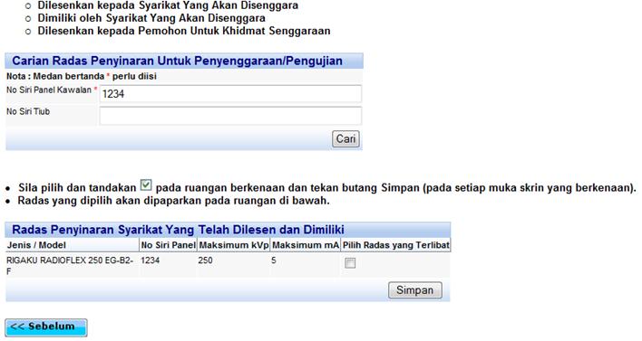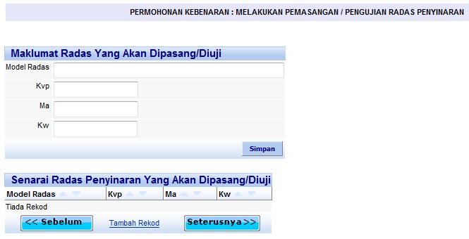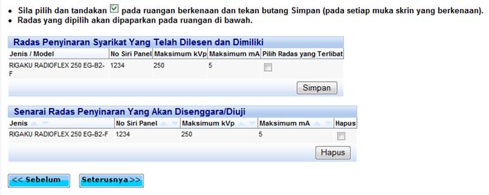Pemasangan/Pengujian Radas Penyinaran [kembali ke