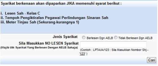 yang diperlukan dan klik butang ‘Cari’. Masukkan butiran yang diperlukan pada