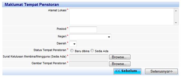 Skrin maklumat diperlukan untuk pembinaan tempat