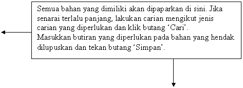Skrin pemilihan bahan yang terlibat