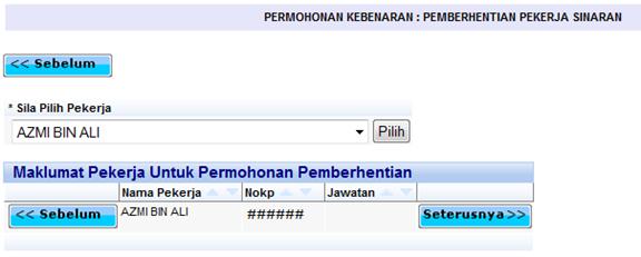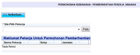 Skrin pemilihan pekerja untuk pemberhentian