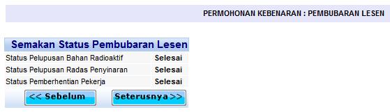 skrin terakhir yang akan dipaparkan untuk setiap permohonan.