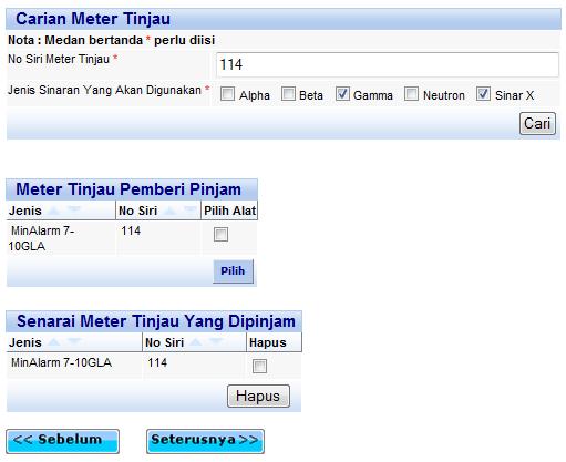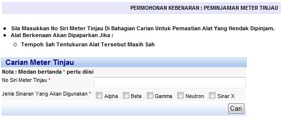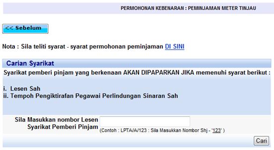 Skrin carian meter tinjau yang hendak dipinjam