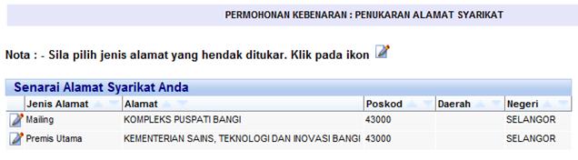 Alamat Syarikat