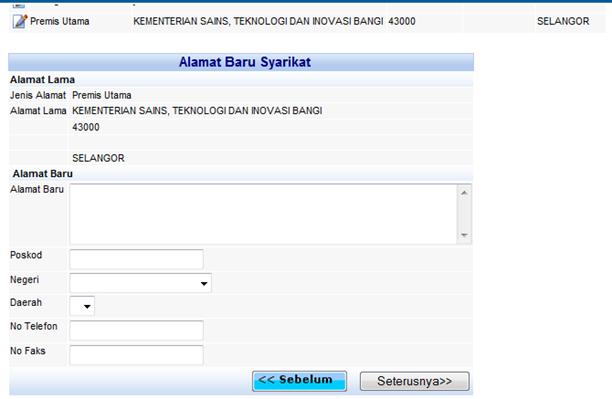 Skrin penukaran alamat