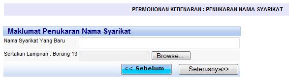 Skrin penukaran nama syarikat